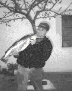 Nuestro amigo "El Maestro-Eduardo" con una trucha de 4.500 Kg.capturada por Pedro Martín Gómez, el 2º día de pesca de 1.999