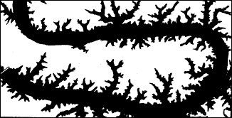 Figura nº 1: Detalle de la geometría irregular de orillas adecuada para la freza del black bass en ecosistemas lacustres.